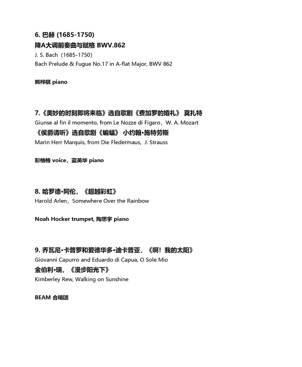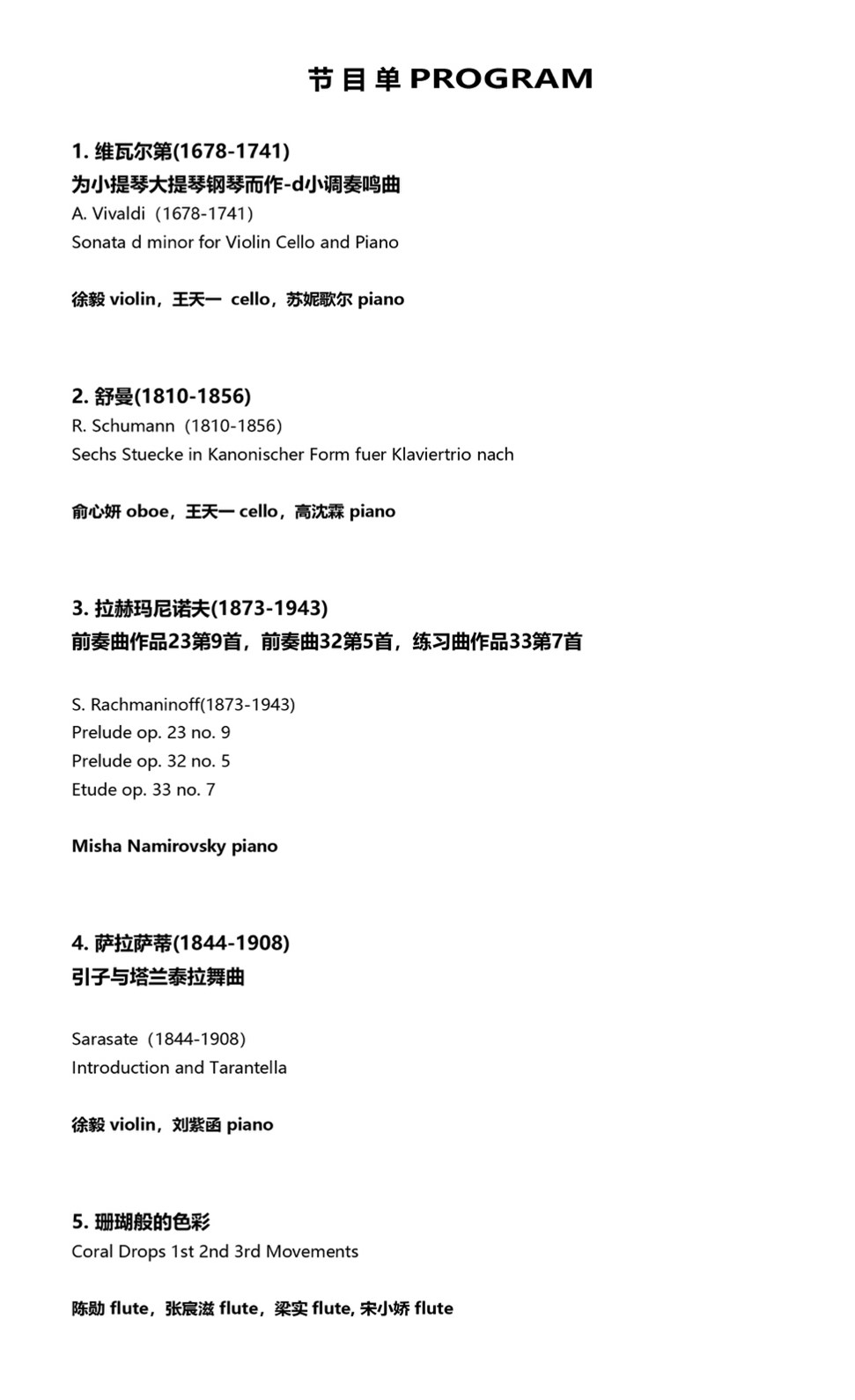 Durante questa esibizione, il pianista Misha Namirovsky si unirà agli studenti e ai docenti della Beijing Eastbank Academy of Music, presentando una varietà di composizioni solistiche, duetti e concerti. Saranno eseguite opere di compositori come Sarasate, Rachmaninov, Vivaldi, Schumann, Bach, Mozart, Strauss.